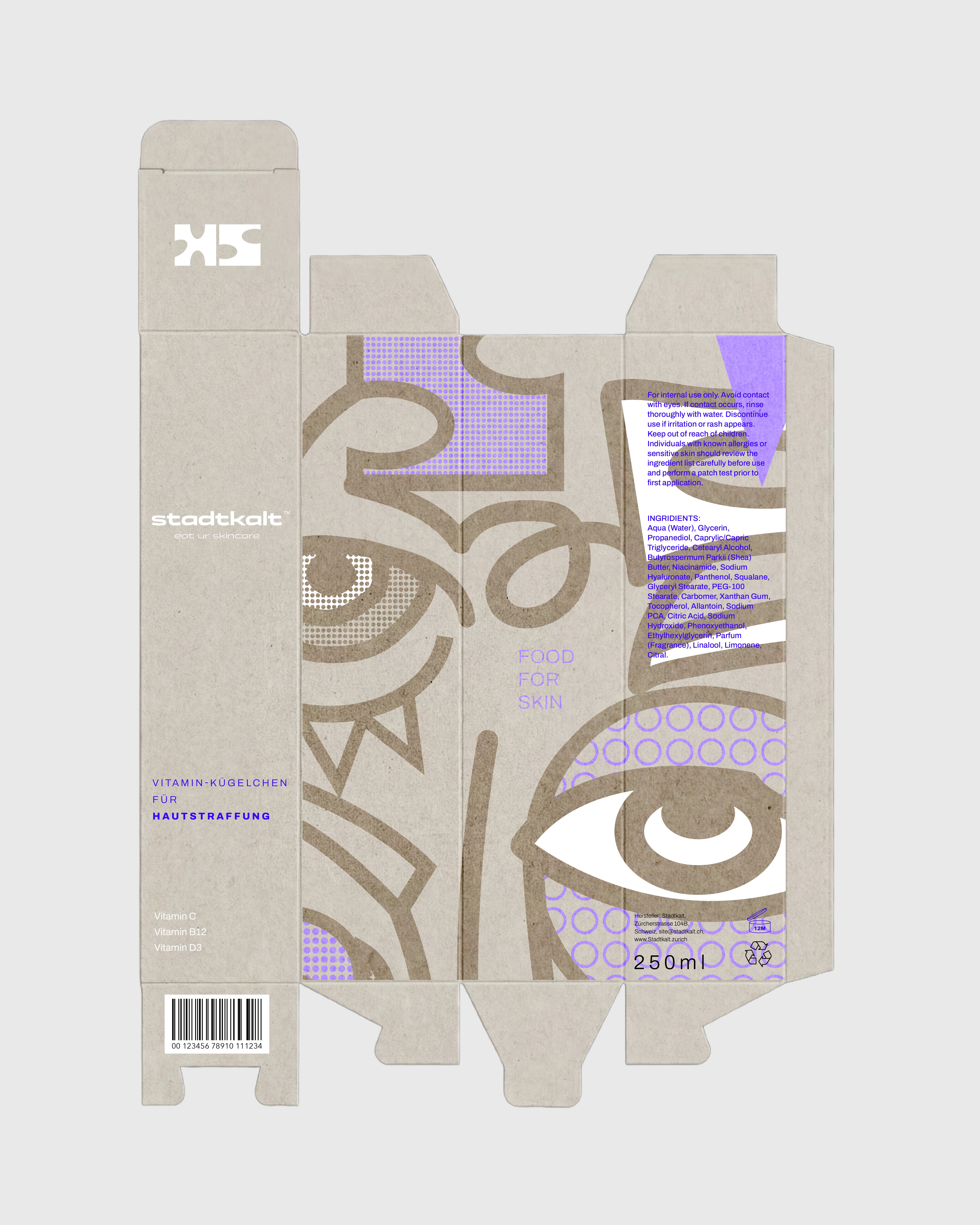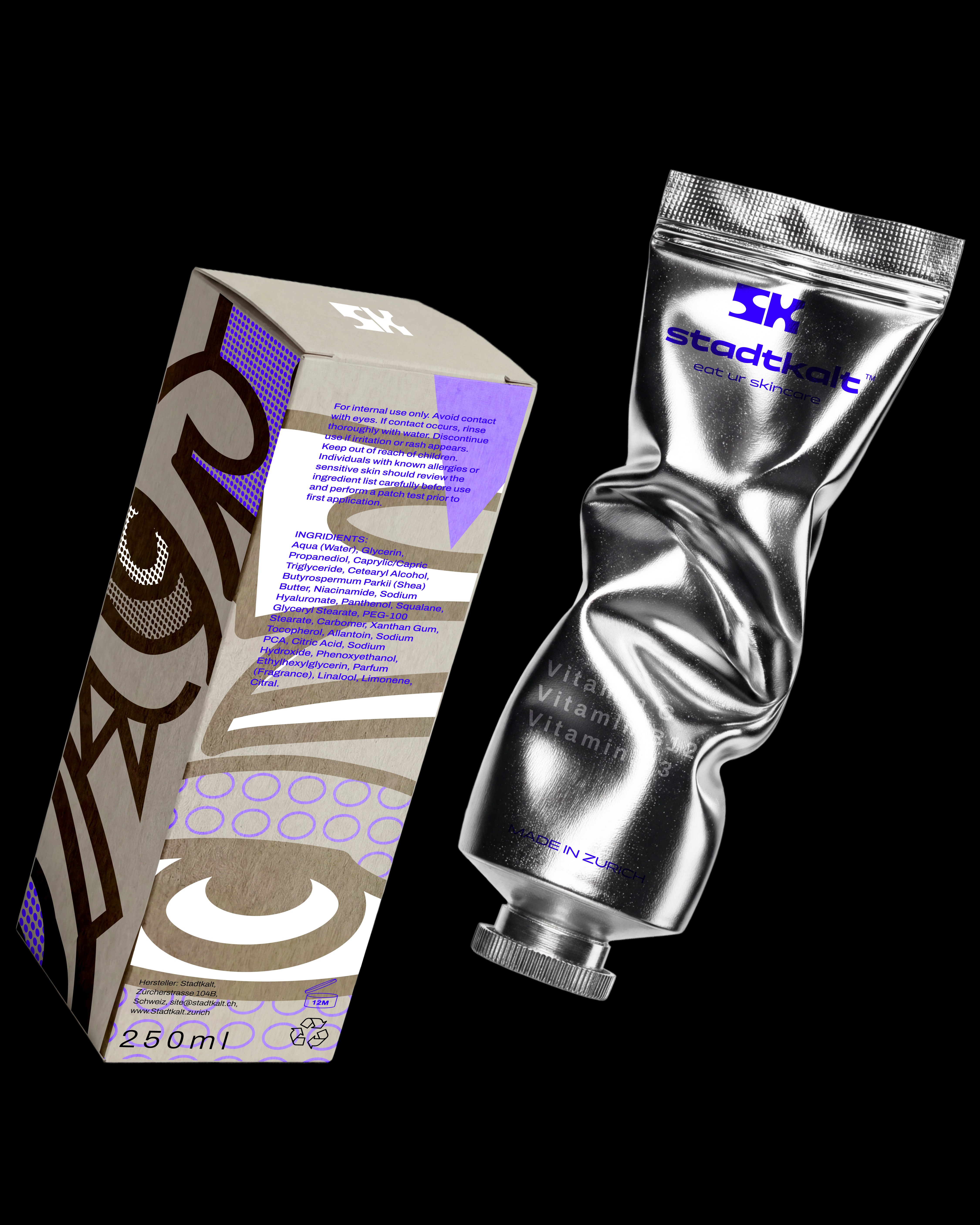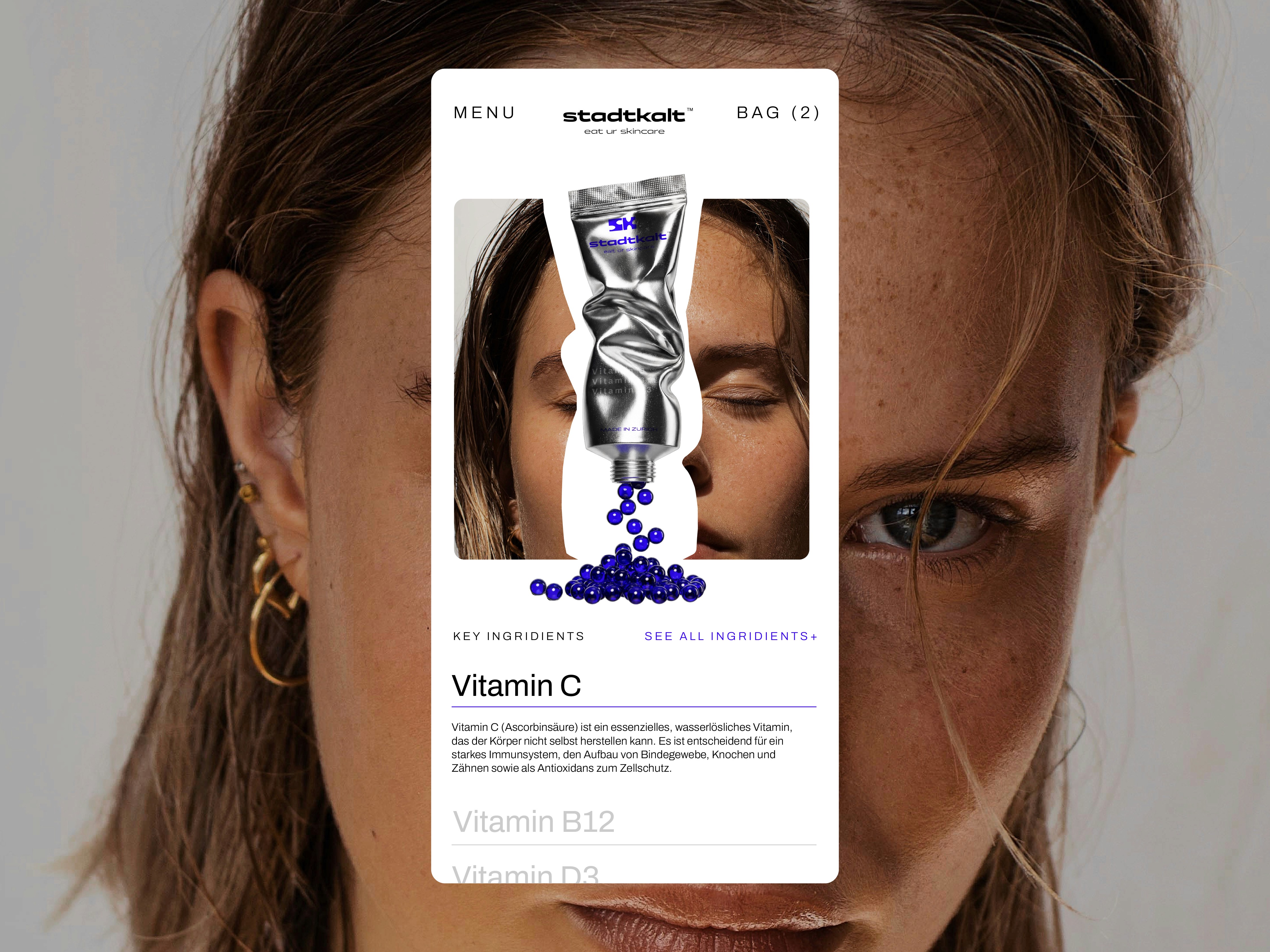 Stadtkalt – Eat ur Skincare is a new Swiss skincare e-commerce brand. The goal was to create a digital presence that conveys purity, tactility, and trust. The objective was to develop a custom website and packaging system that supports both brand storytelling and conversion. The key visual is inspired by the brand’s unique selling point – small ingestible globules designed to promote healthy skin. The minimal yet expressive visual language aligns with the brand’s innovation of “food for skin” while reflecting its sustainability-driven ethos.