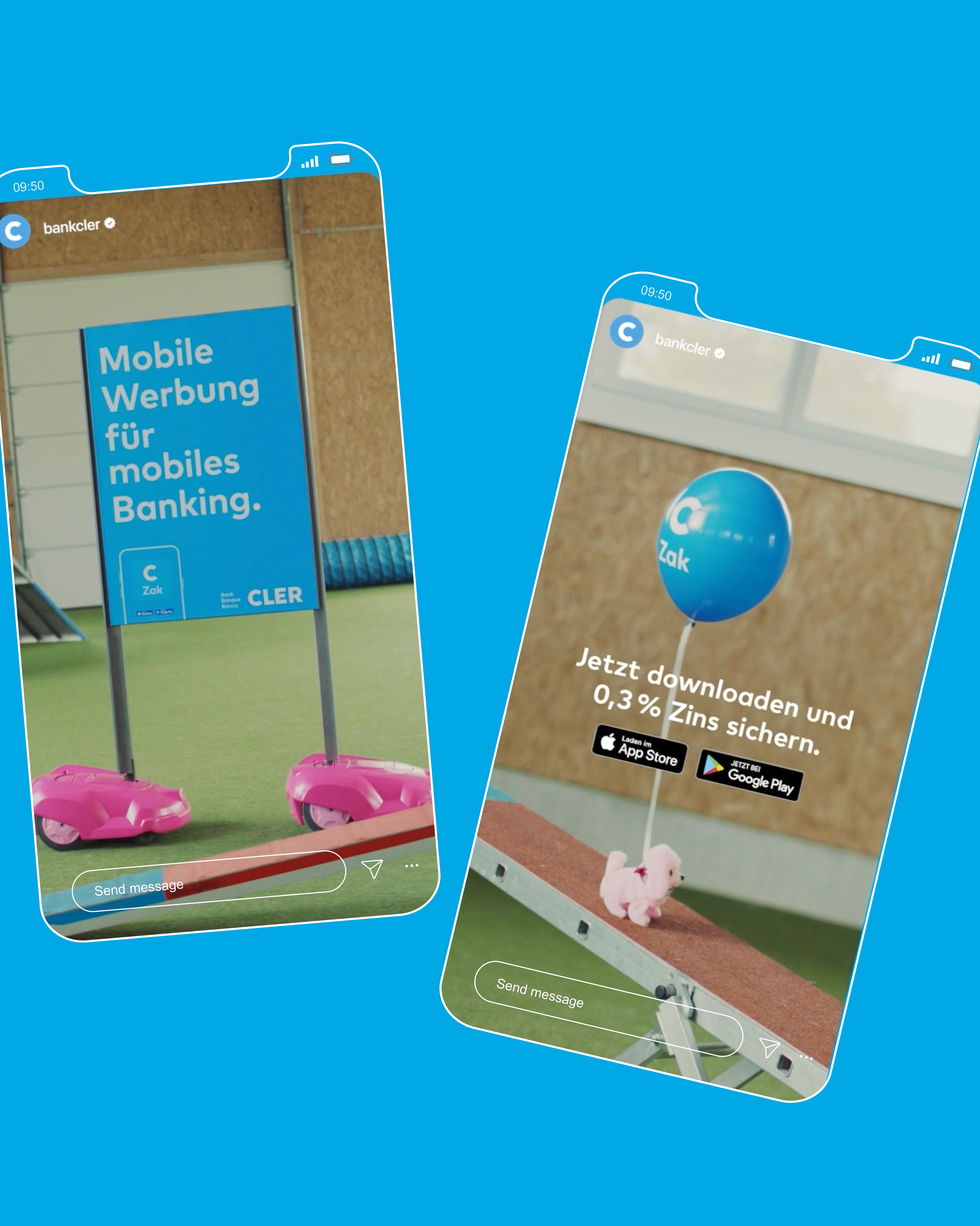 Bank Cler is now mobile with its Zak mobile banking app. Ideas had to be developed very quickly that would playfully and humorously highlight the pun “mobile advertising for mobile banking”. One of the three video campaign ideas – the moving robot vacuum cleaner – came from me. Now, the ads are literally „mobile”, moving along with the advertising poster.