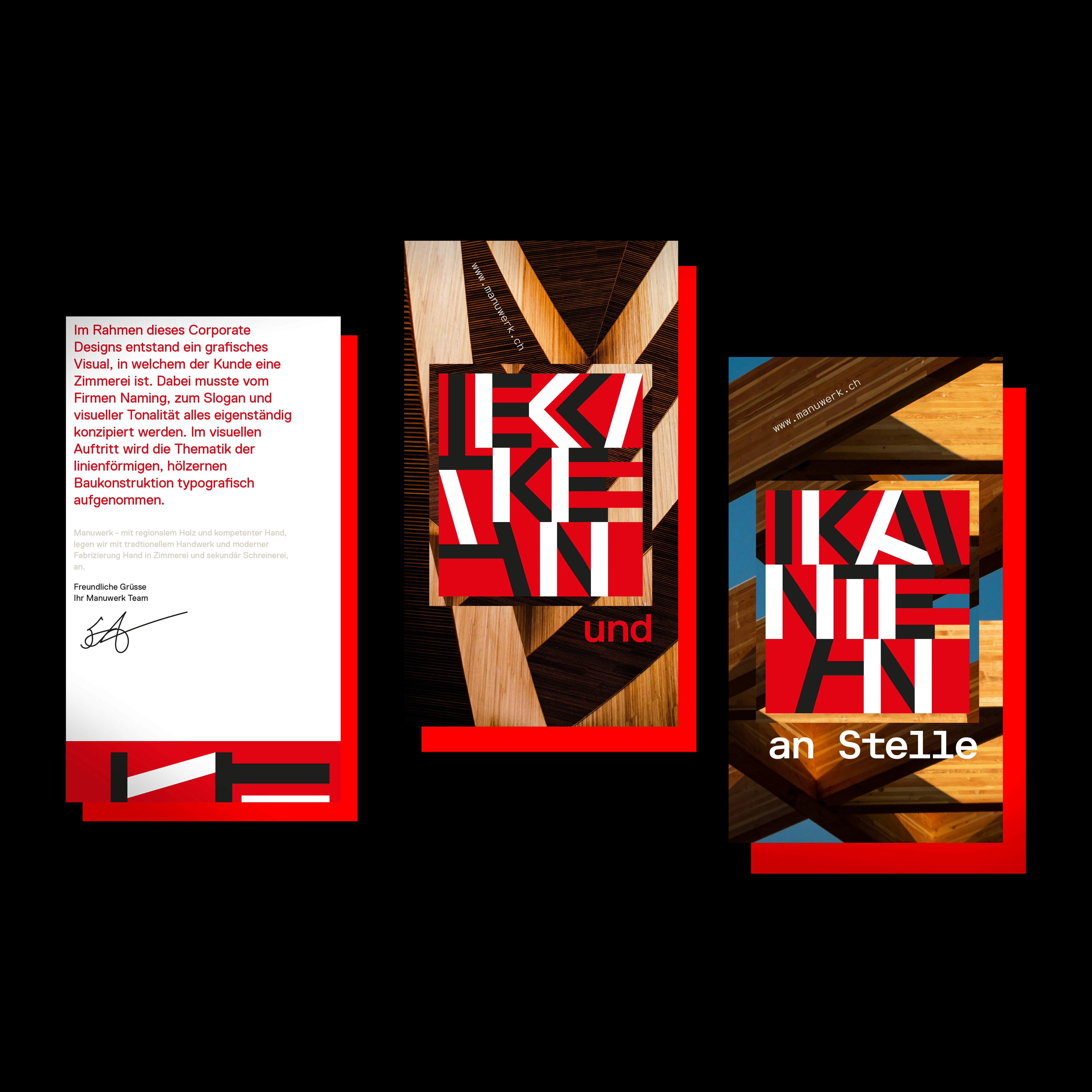 As part of this corporate design project, a visual identity was developed for a fictional carpentry company. Every element – from the company name and slogan to the overall visual tone – was conceived independently. The resulting identity integrates the theme of linear timber construction through typographic elements, reflecting the structural aesthetics of wood building.